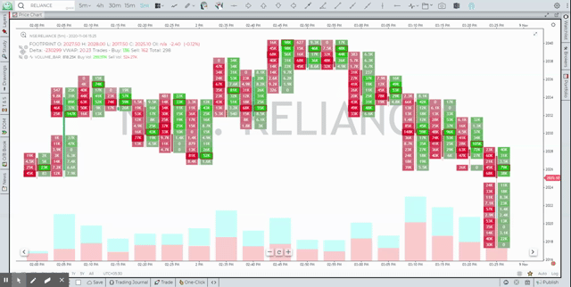 - Delta Profile: Displays the difference between buying and selling volume, providing insight into market sentiment.
