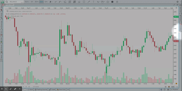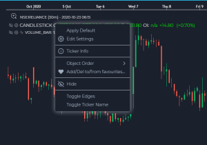 The chart tooltip provides candle level summary as you hover your mouse over a given candle. You can hide/unhide the tooltip by clicking on the Magnifying glass icon