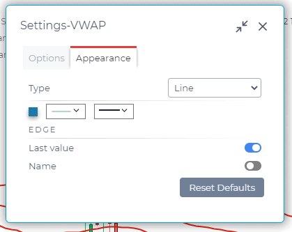 Clicking on the Gear Icon will open up the Anchor VWAP Settings Dialogue